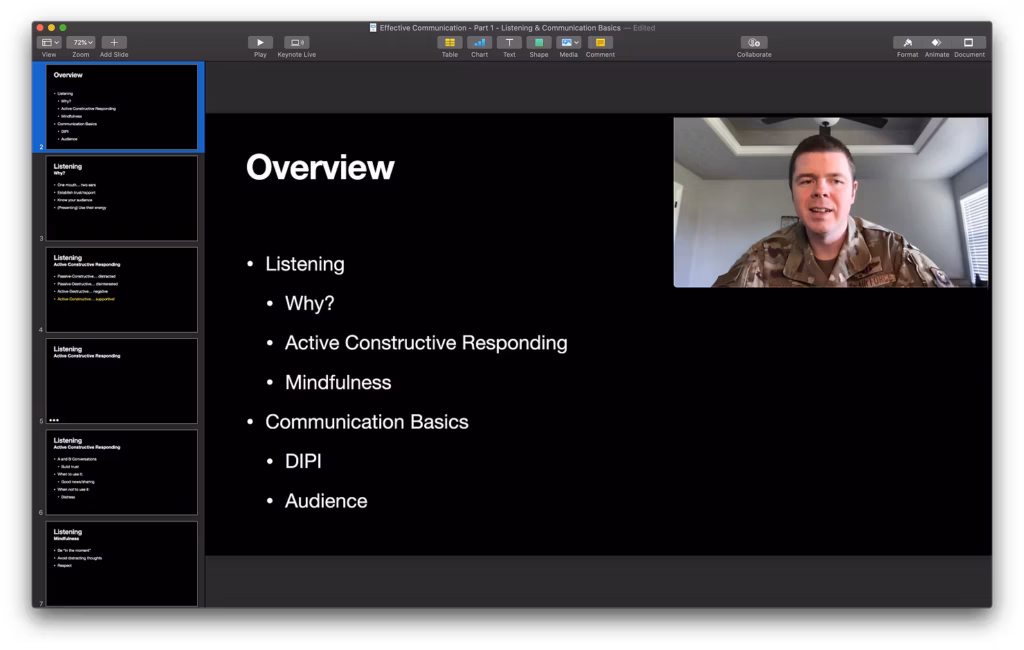 On occasion, I have recorded my own classes for my teammates on effective communication. I had a lot of fun learning how to do it and was pleasantly surprised by how easy it was to do with a modern laptop in your home. You can get fancy and purchase all kinds of high-end recording equipment, but it shocked me how great my video came out with my laptop’s built-in equipment. I want to walk you through the process I figured out in the hopes it can help you more effectively reach out to your team and continue to build and develop them, despite your teleworking challenges.